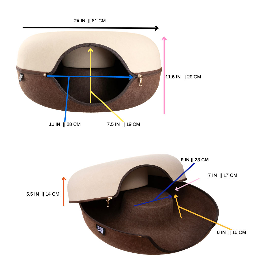 A paws-itively cozy cat cave and bed combo! Whatever mood kitty is in, our Donut! Cat Hideaway Cave will surely satisfy their interest. For some privacy and comfort, they can either get cozy inside or rest up on top. And if they’re in the mood to play, you or their fellow feline friends can use it as a fun peek-a-boo toy.